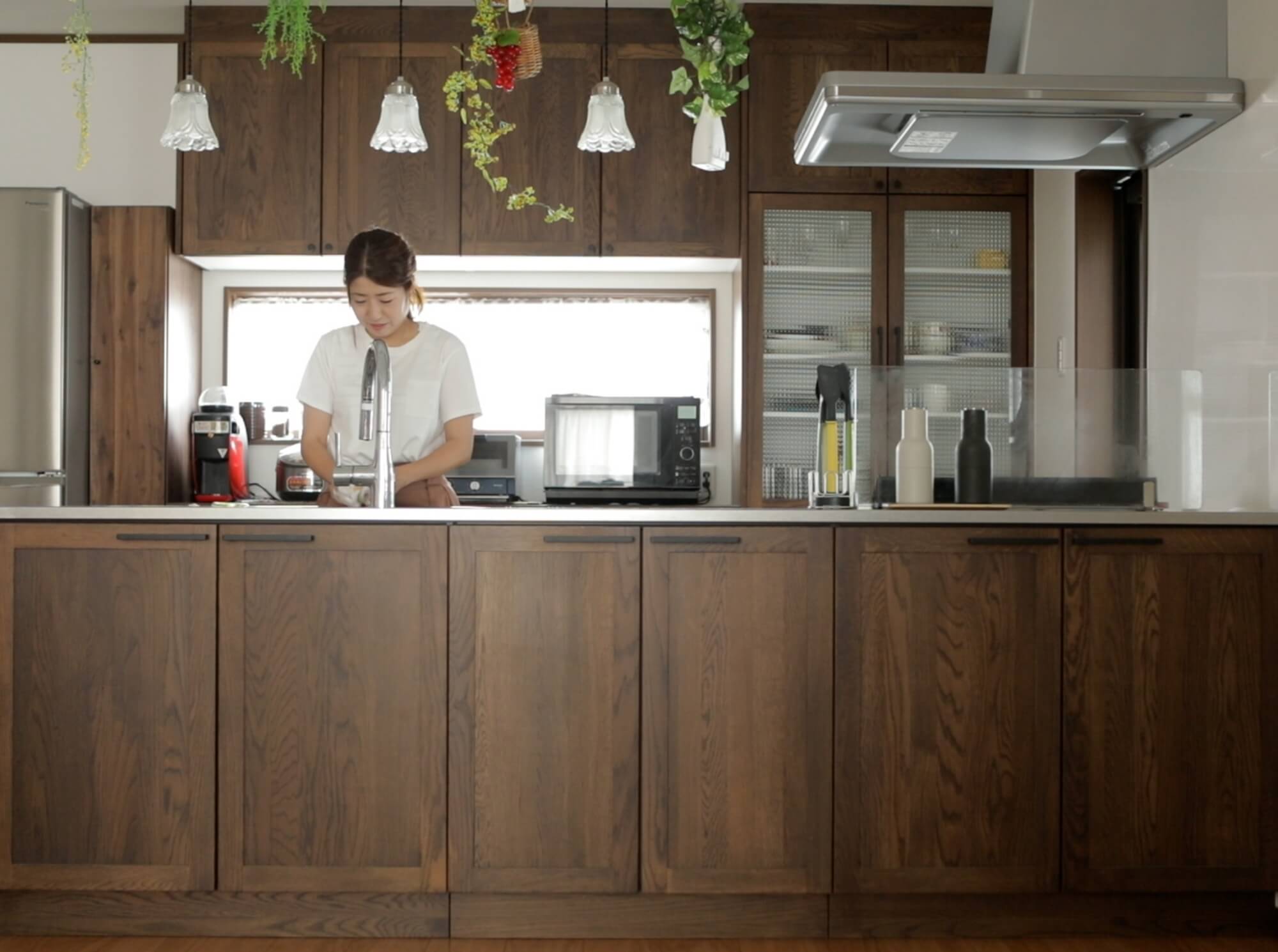 亡き父から引き継いだ自慢の家を息子たちに引き継ぎたいと思いリフォームに踏み切りました。リフォームした時、子どもが小さかったので全体を見たいと思って、オープンキッチンにしました。外観は立派な和風の家ですが、中に入ると「あらっ」と洋風な一面もお気に入りのひとつ。僕の趣味がたくさん詰まった空間となりました。
